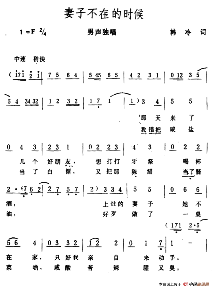 关于《妻子不在的时候》曲谱的评论