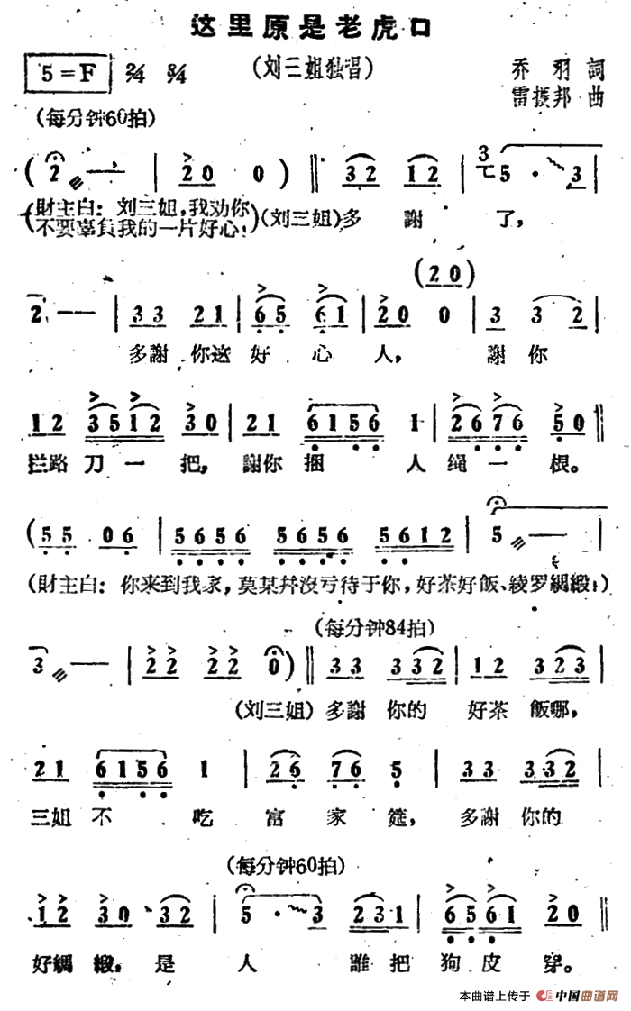 选自乔羽编著《影片 刘三姐 歌曲集》,刘三姐独唱。