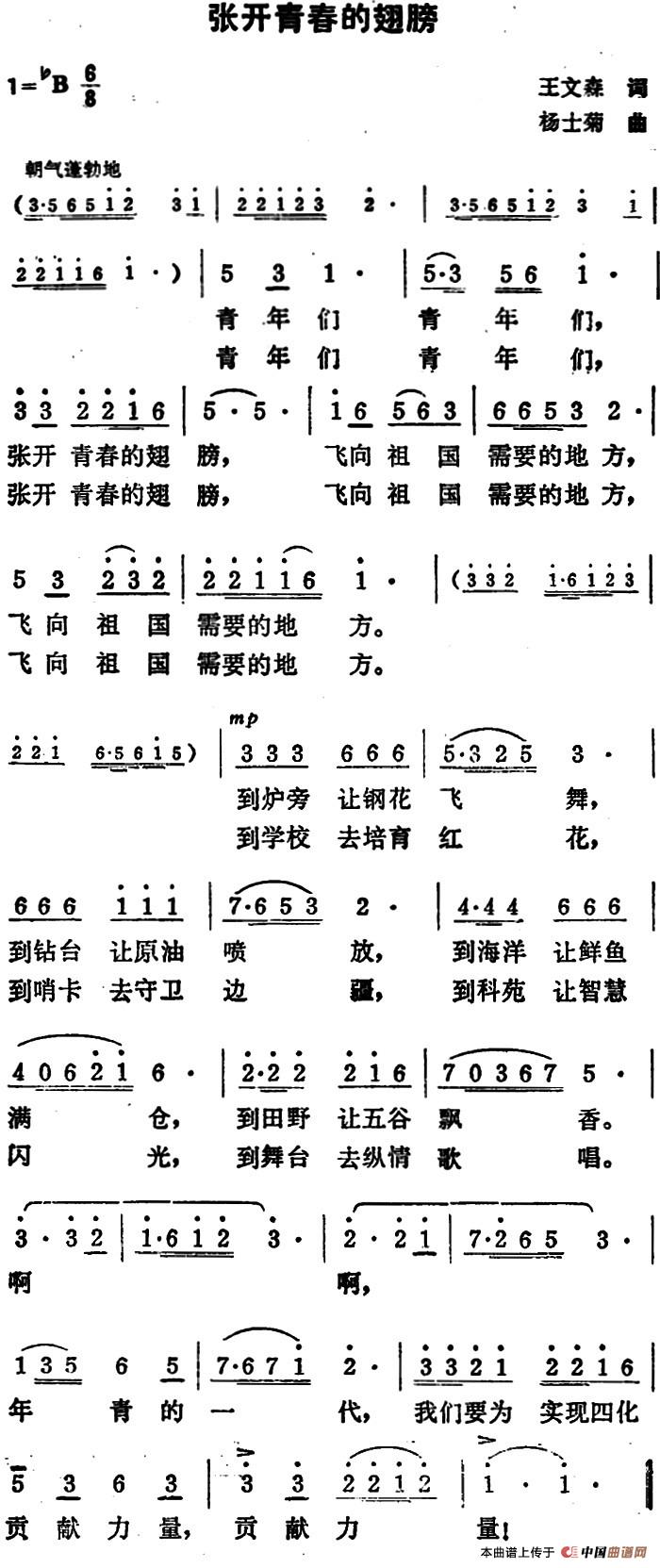 关于《张开青春的翅膀》曲谱的评论