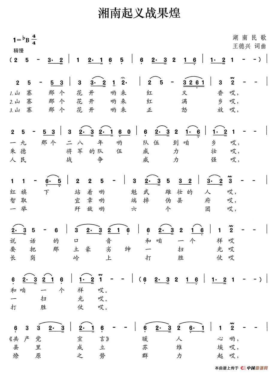关于《湘南起义战果煌》曲谱的评论