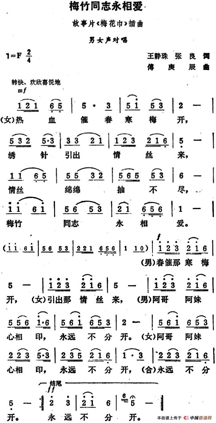 关于《梅竹同志永相爱》曲谱的评论