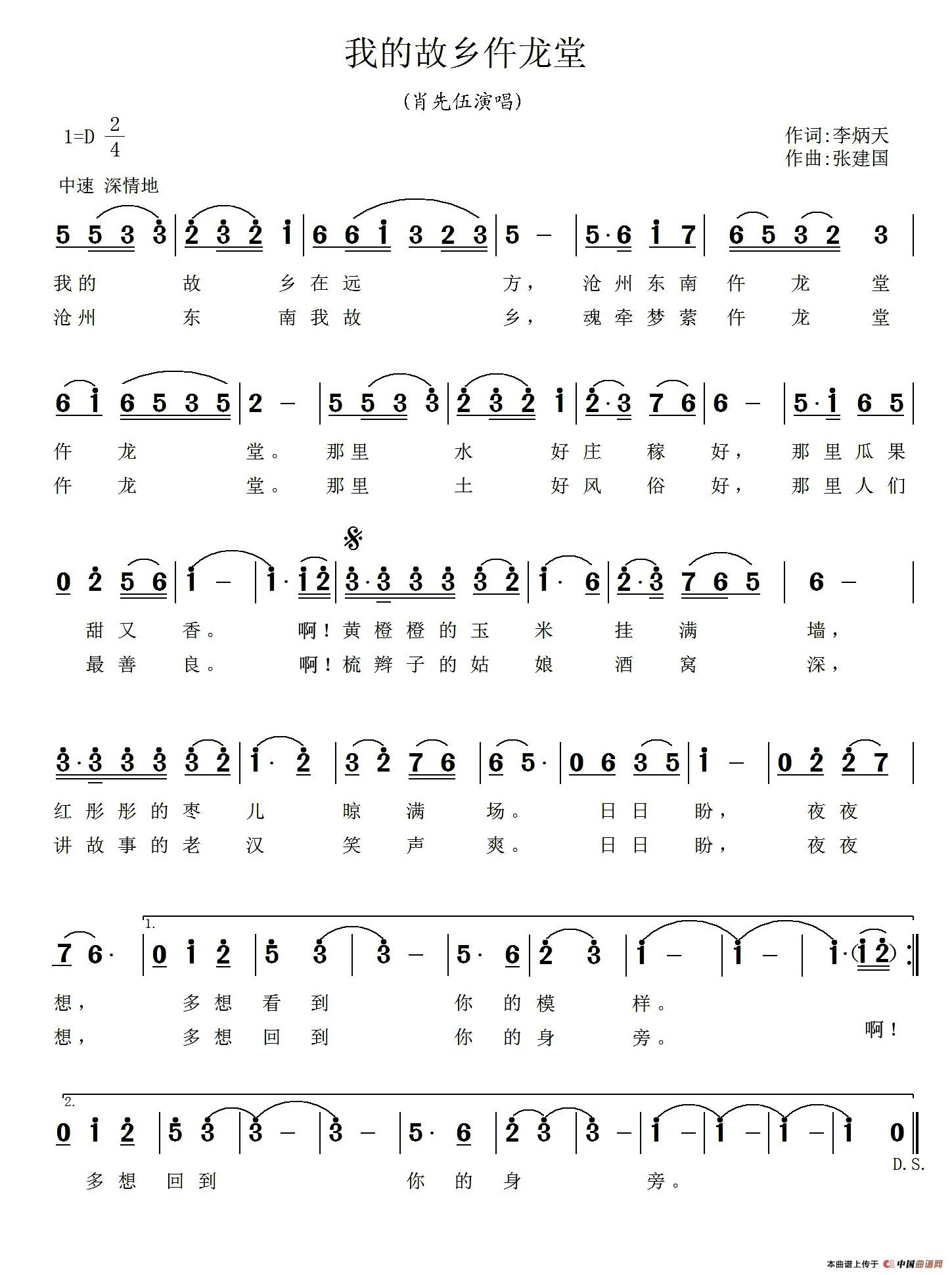 关于《我的故乡仵龙堂》曲谱的评论