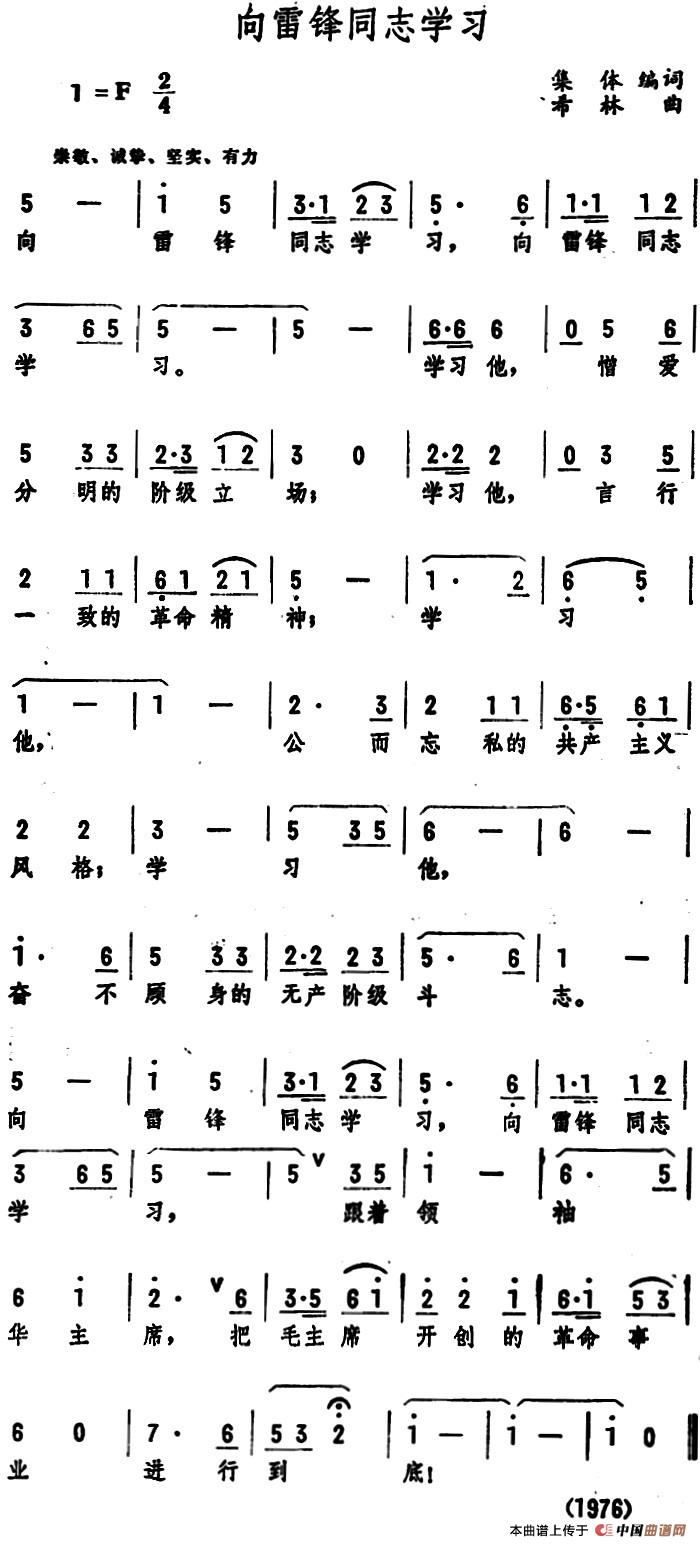 关于《向雷锋同志学习 》曲谱的评论