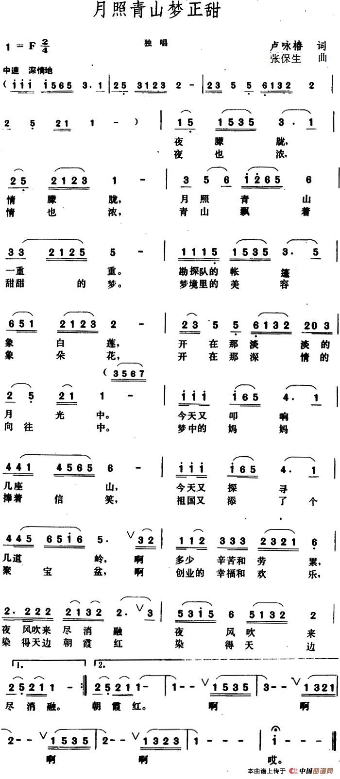 关于《月照青山梦正甜 》曲谱的评论