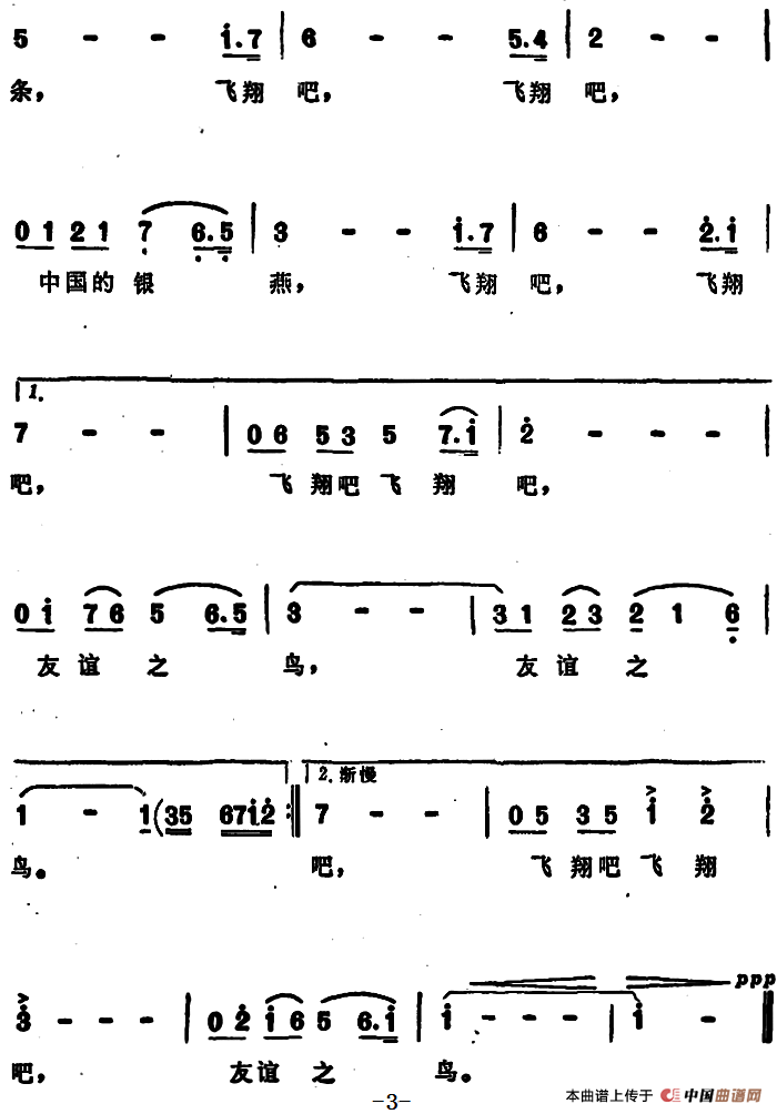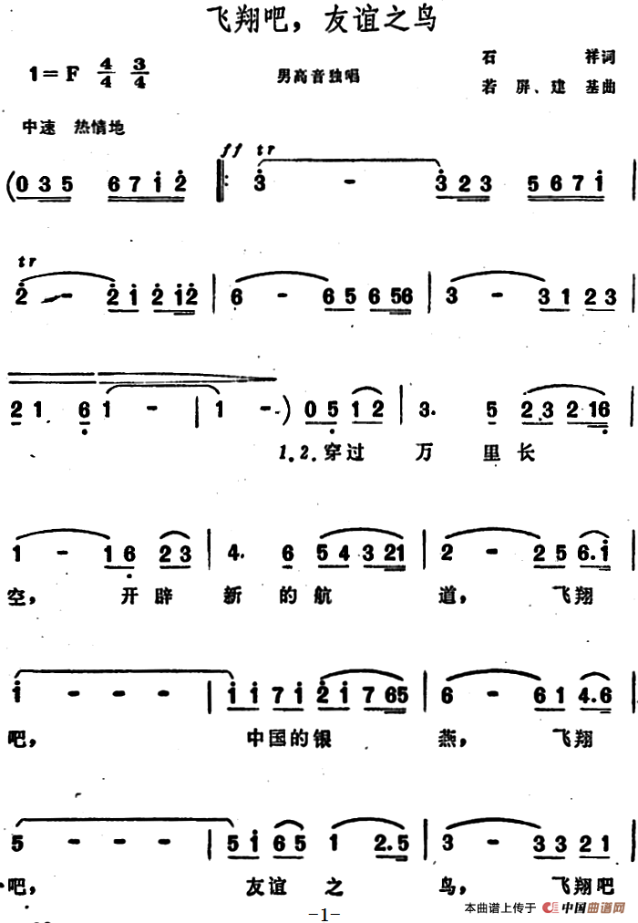 关于《飞翔吧,友谊之鸟》曲谱的评论