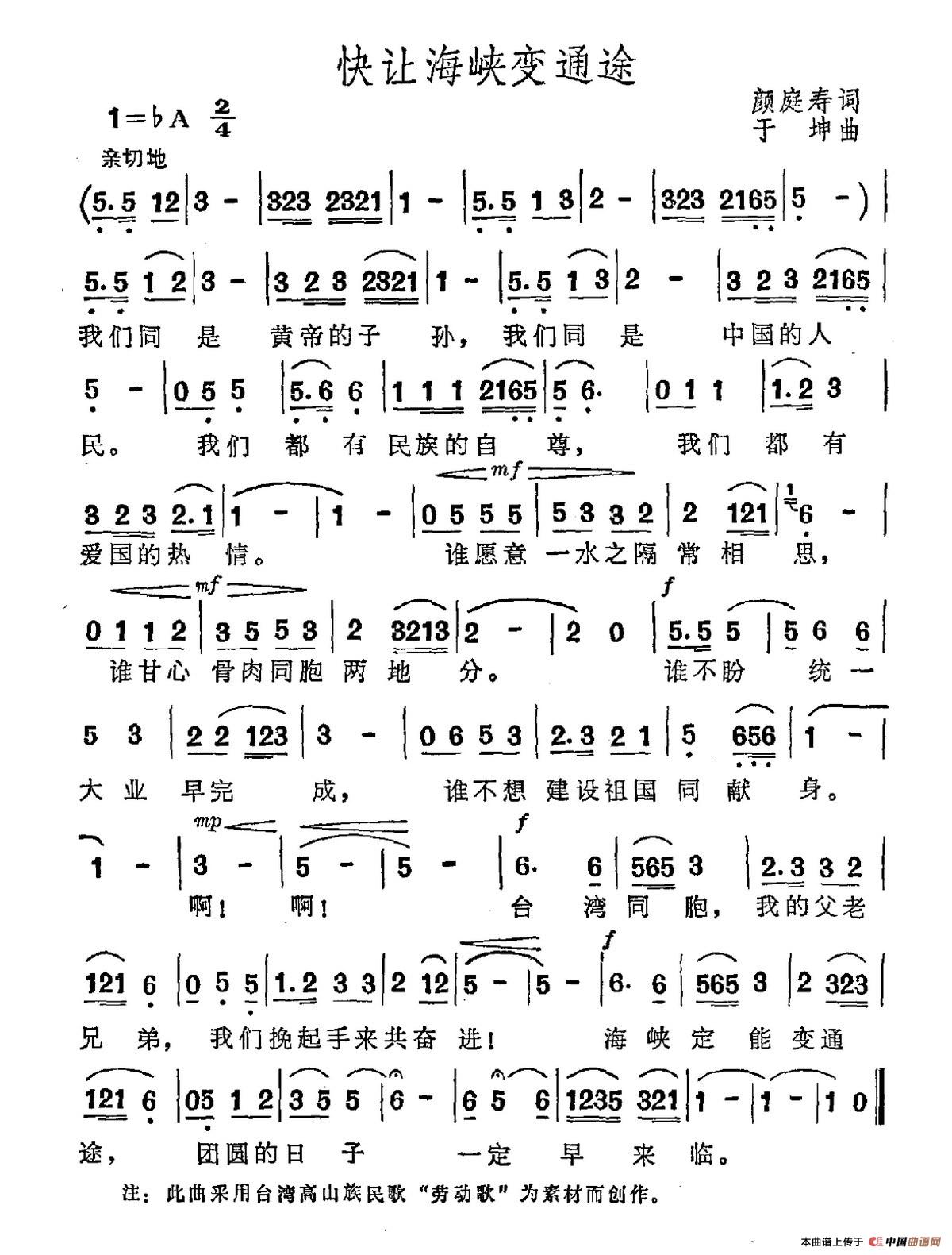 关于《快让海峡变通途》曲谱的评论