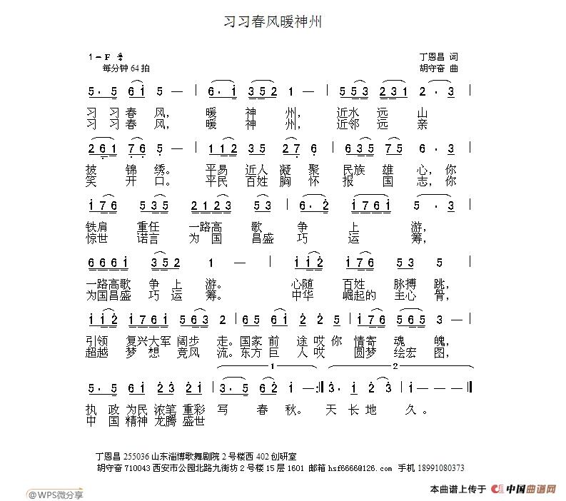 关于《习习春风暖神州》曲谱的评论