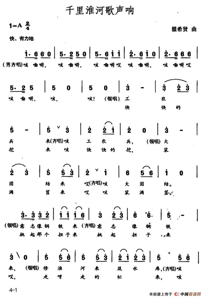 关于《千里淮河歌声响》曲谱的评论