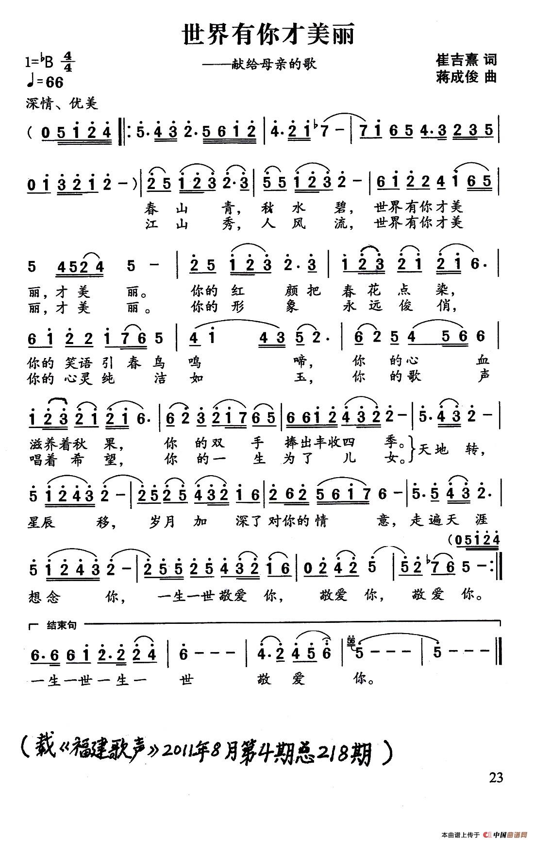 致谢:《中国曲谱网》衷心感谢作者老师馈赠原版歌谱!