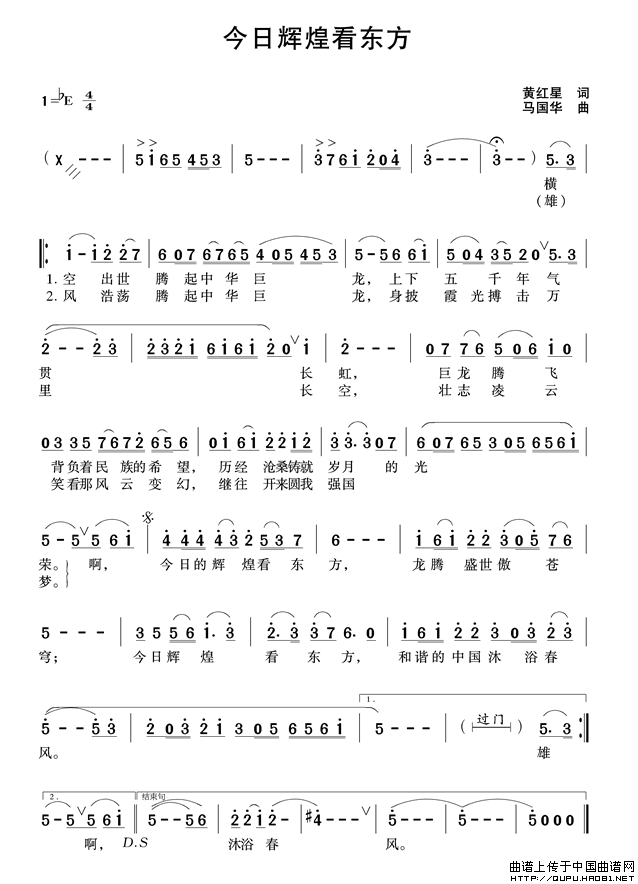 关于《今日辉煌看东方》曲谱的评论