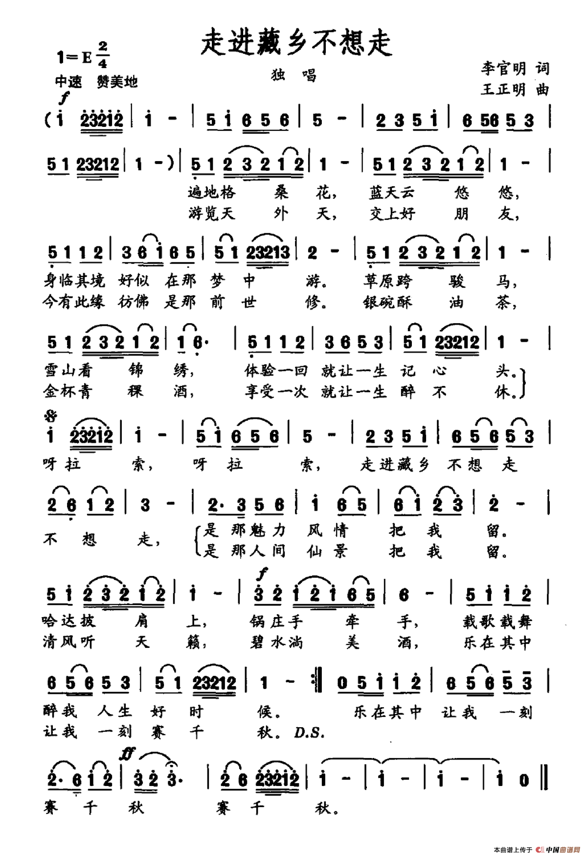 关于《走进藏乡不想走》曲谱的评论