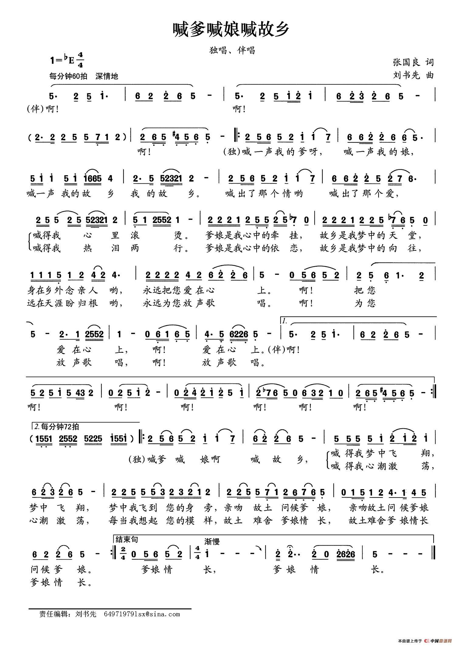 关于《喊爹喊娘喊故乡》曲谱的评论