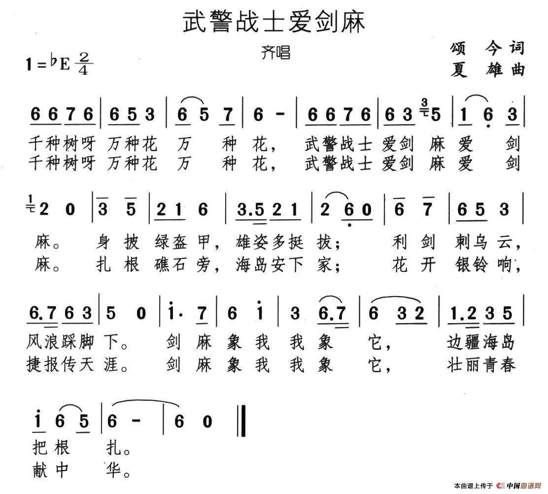 关于《武警战士爱剑麻》曲谱的评论