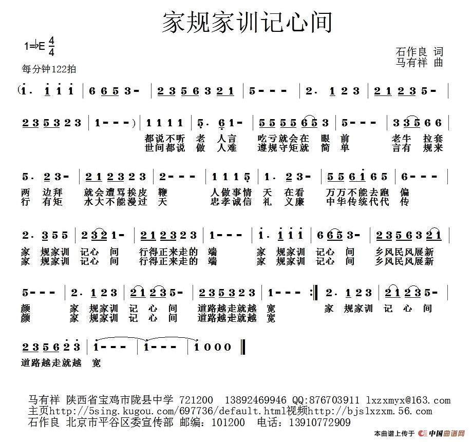关于《家规家训记心间》曲谱的评论