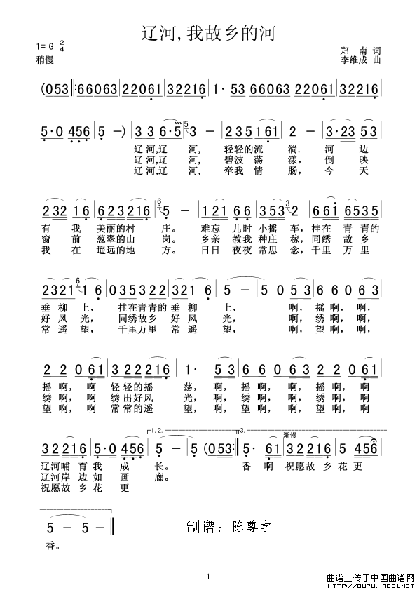 作词:郑南   作曲:李维成   格式:简谱   来源:谱友陈尊学 制谱上传   上传:陈尊学   日期:2011-01-05   浏览次数: