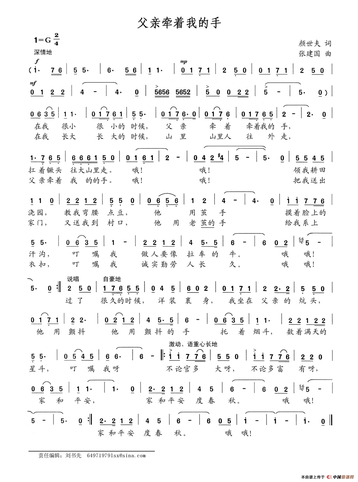 关于《父亲牵着我的手》曲谱的评论