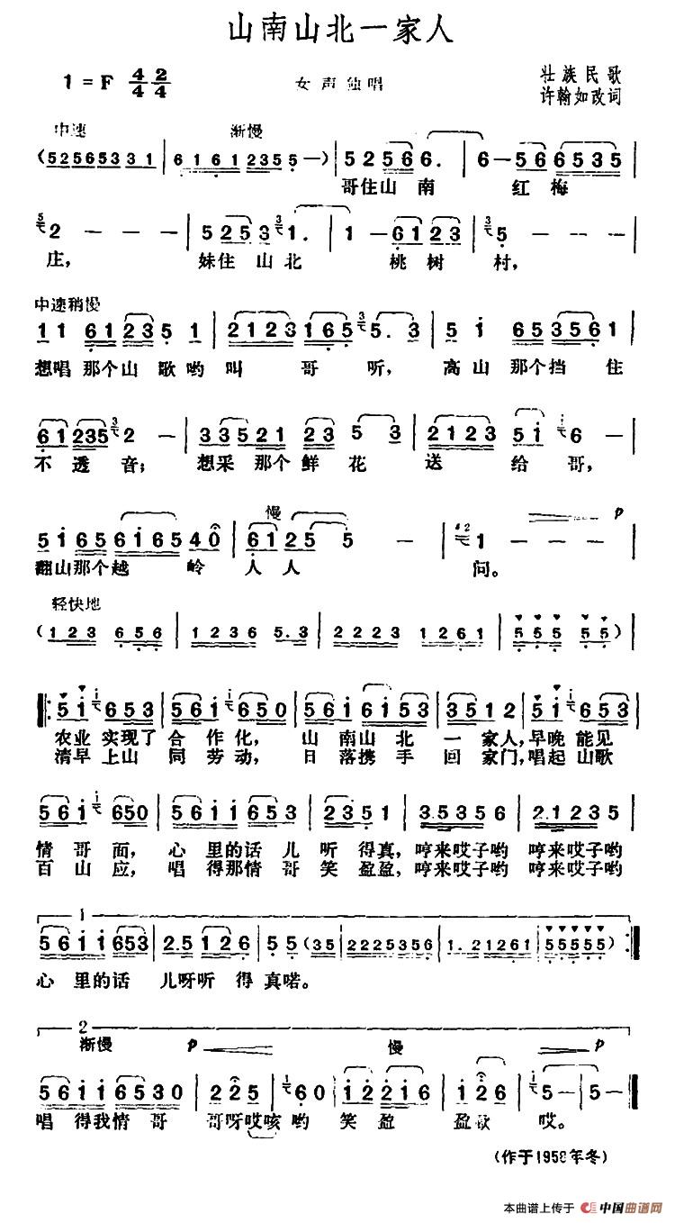 作词:壮族民歌 许翰如改词 来源:搜谱网 上传:车里子