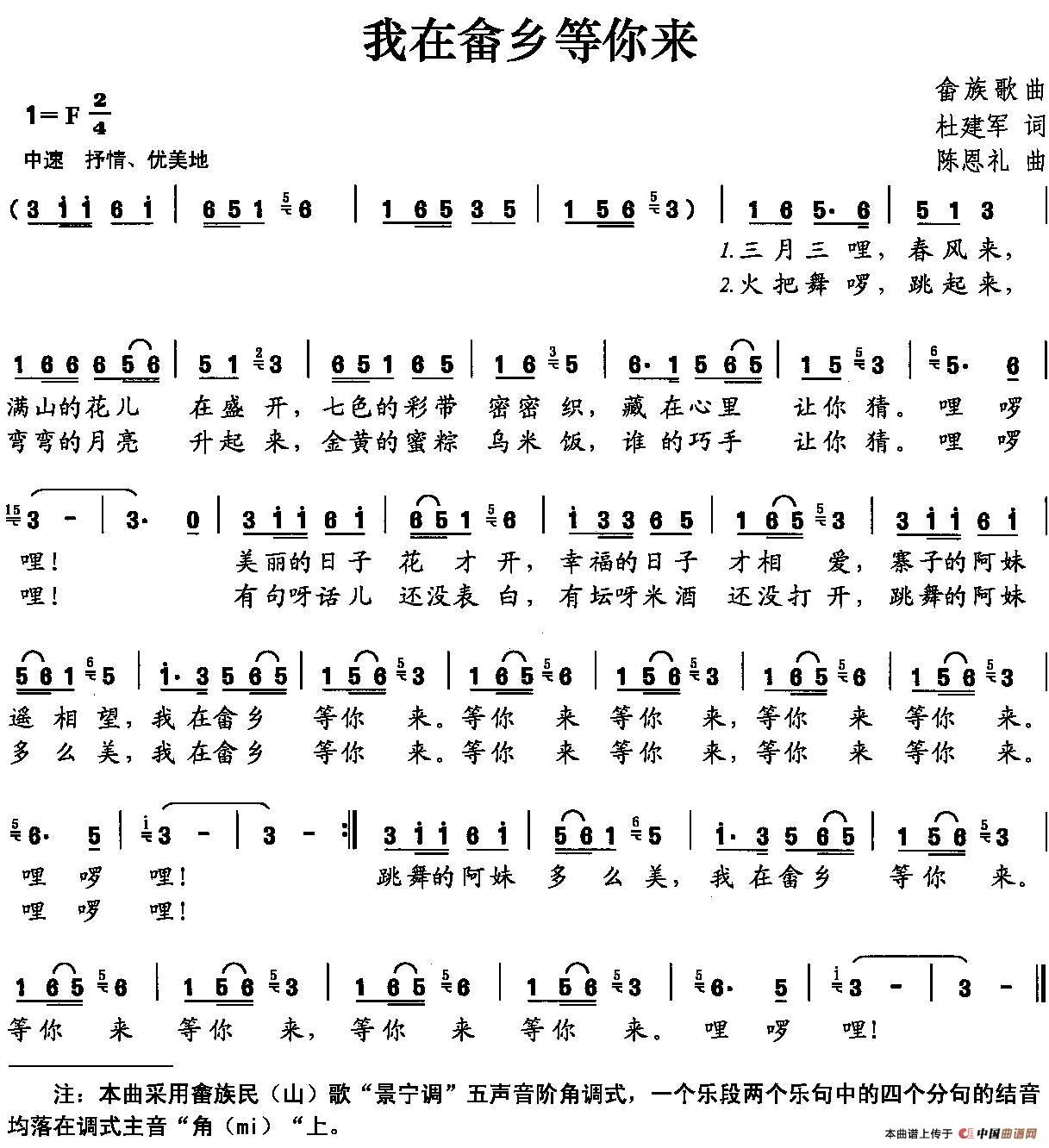 关于《我在畲乡等你来》曲谱的评论