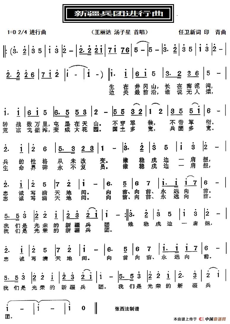 关于《新疆兵团进行曲》曲谱的评论