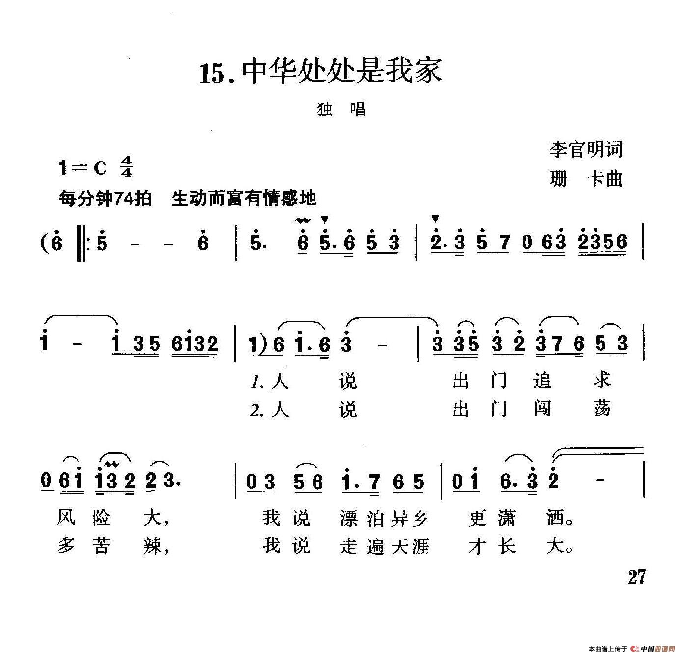 致谢:《中国曲谱网》衷心感谢作者老师馈赠原版歌谱!