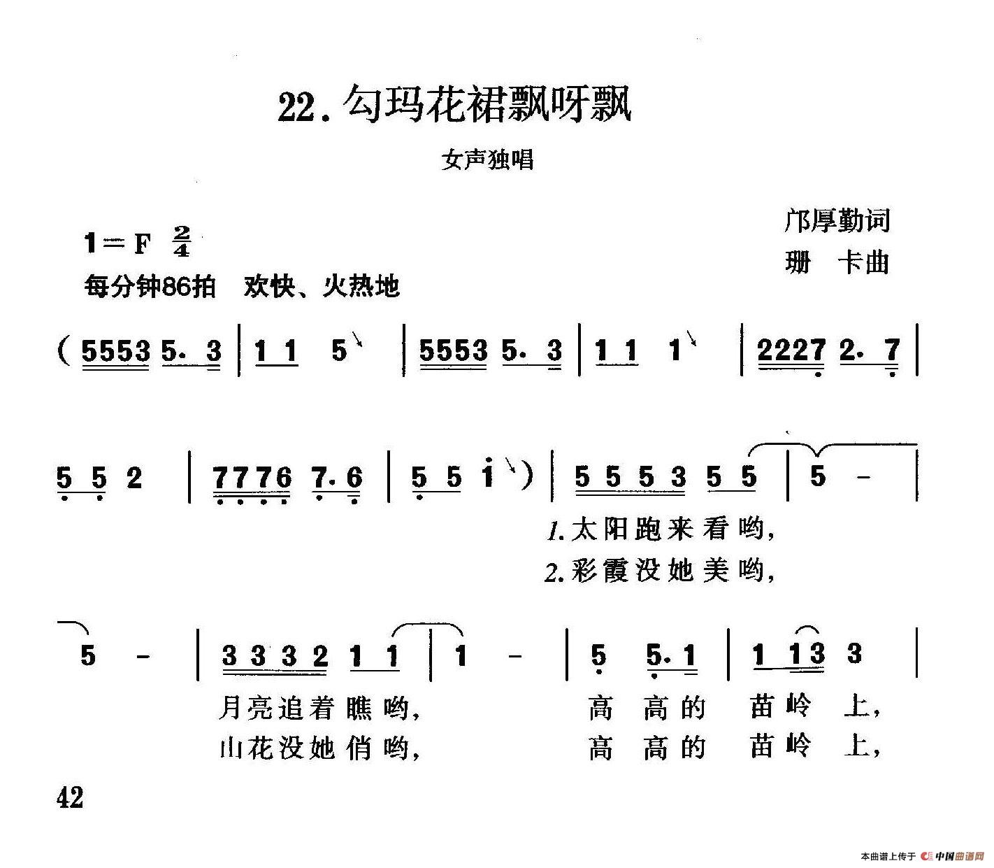 关于《勾玛花裙飘呀飘》曲谱的评论