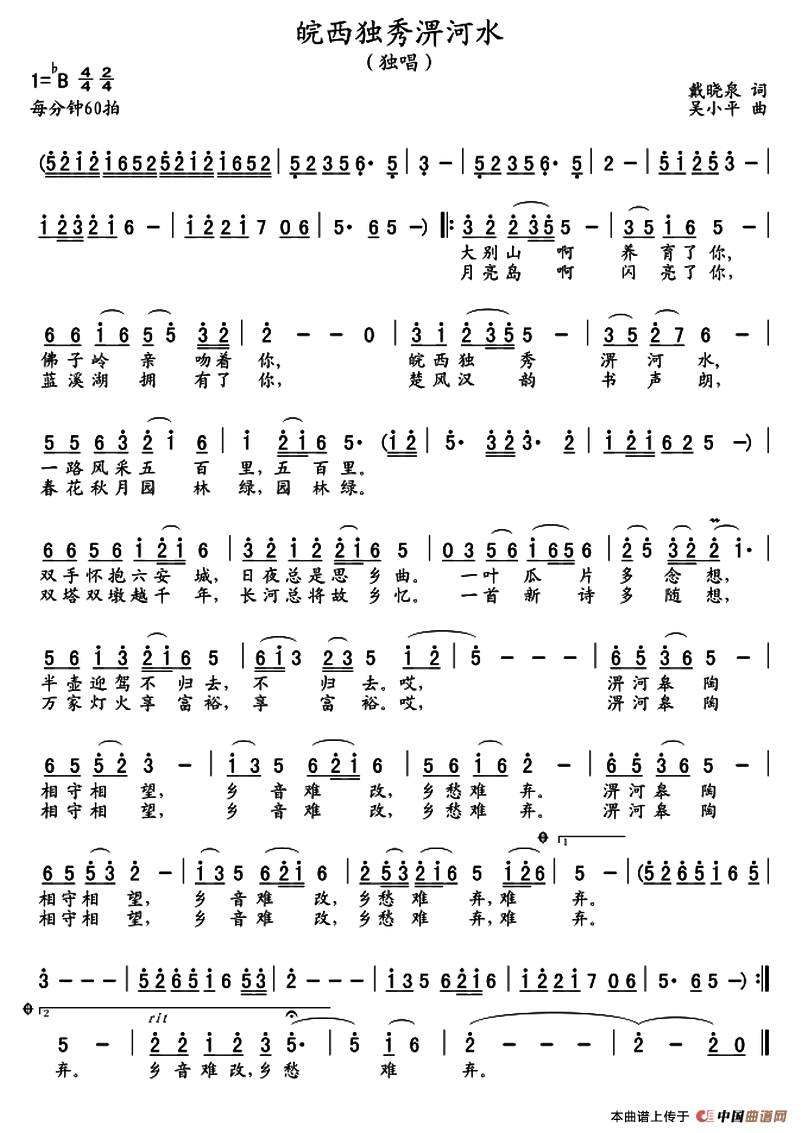 《皖西独秀淠河水》文本歌词