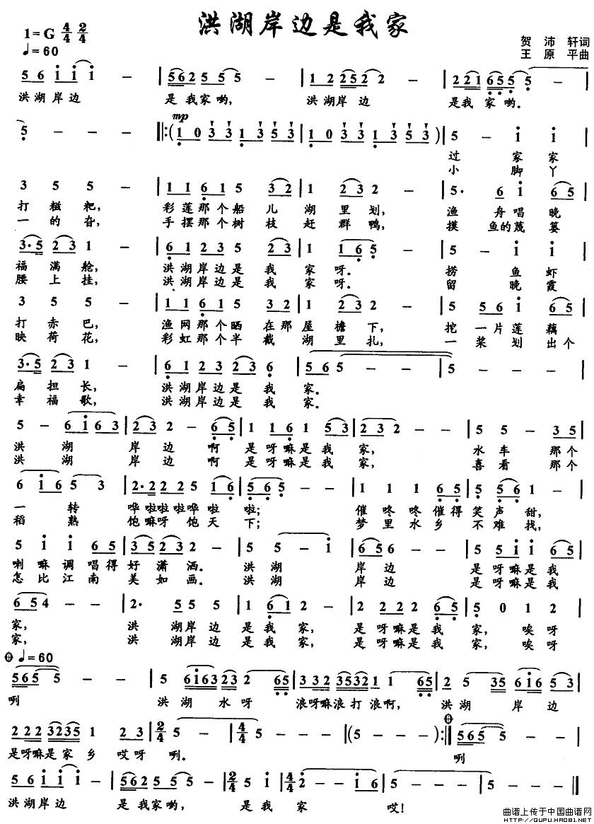 关于《洪湖岸边是我家》曲谱的评论