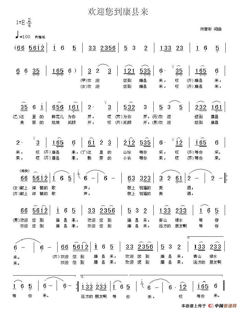 关于《欢迎您到康县来 》曲谱的评论