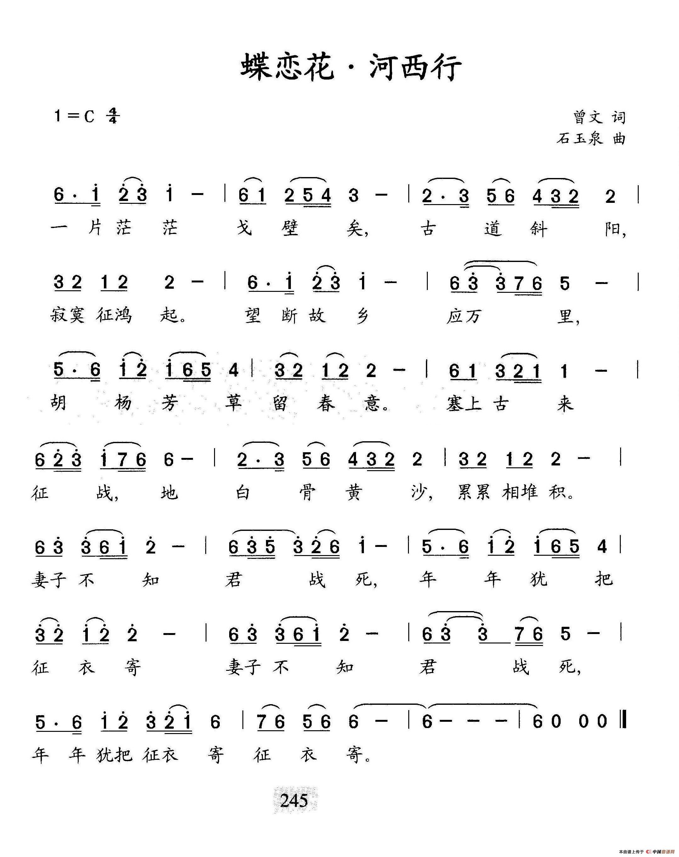 致谢:《中国曲谱网》衷心感谢作者老师馈赠原版歌谱!