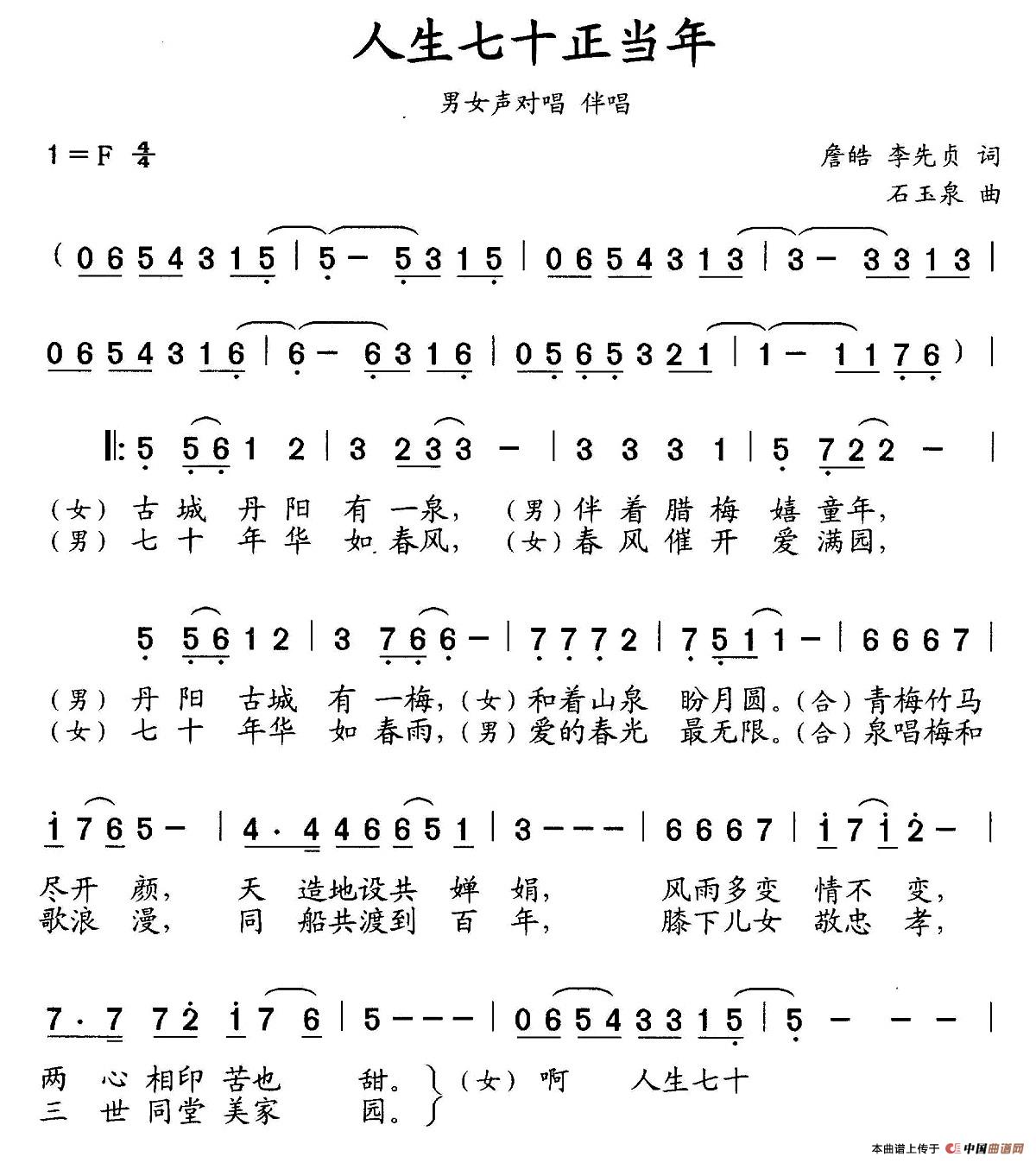 致谢:《中国曲谱网》衷心感谢作者老师馈赠原版歌谱!