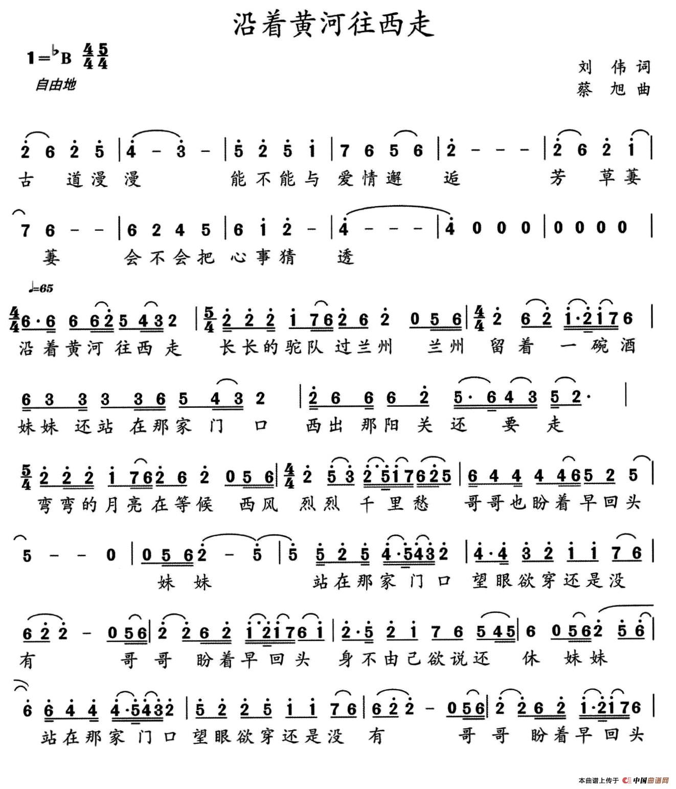 关于《沿着黄河向西走》曲谱的评论
