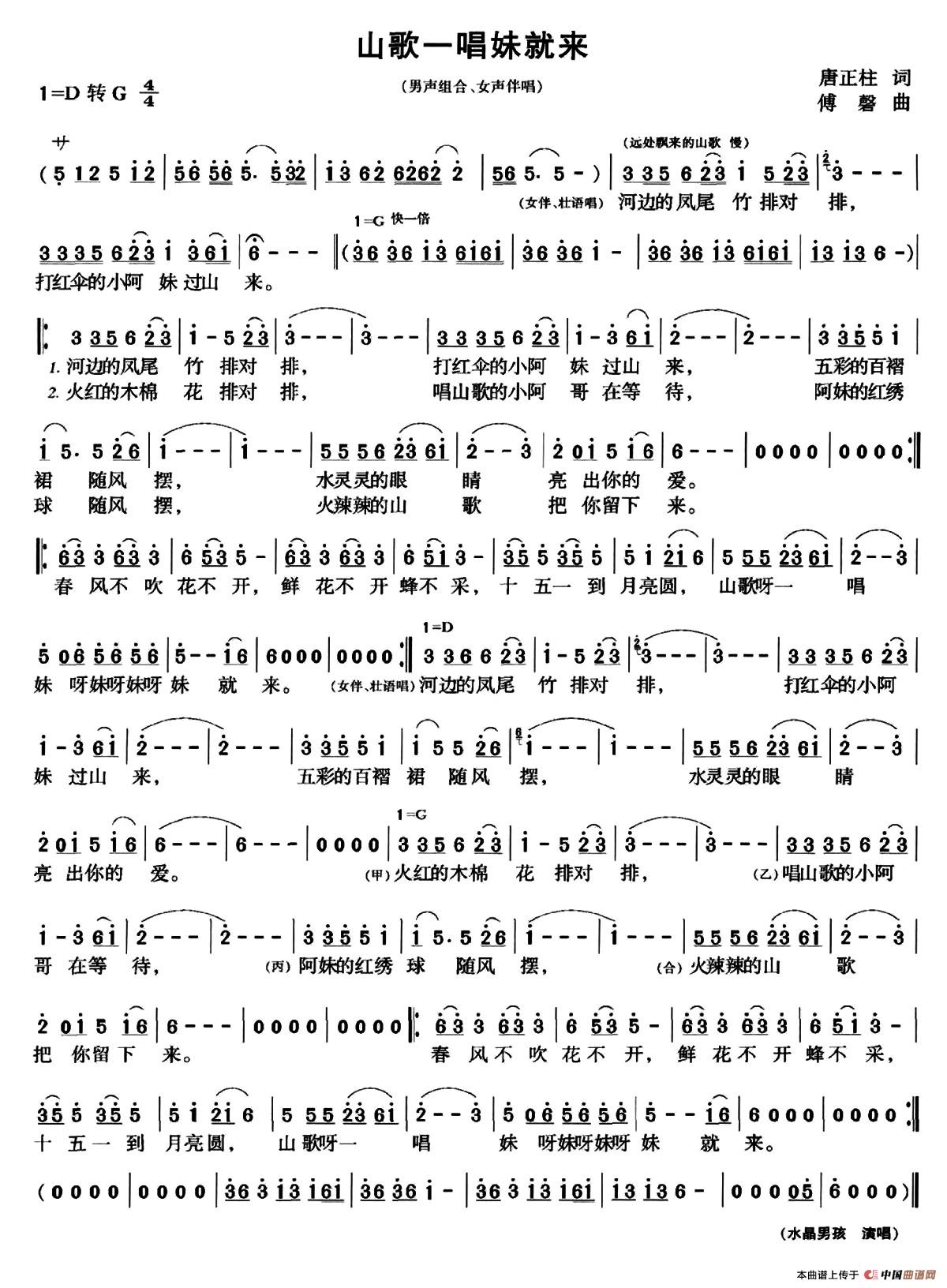 山歌一唱妹就来(唐正柱词 傅滔曲)