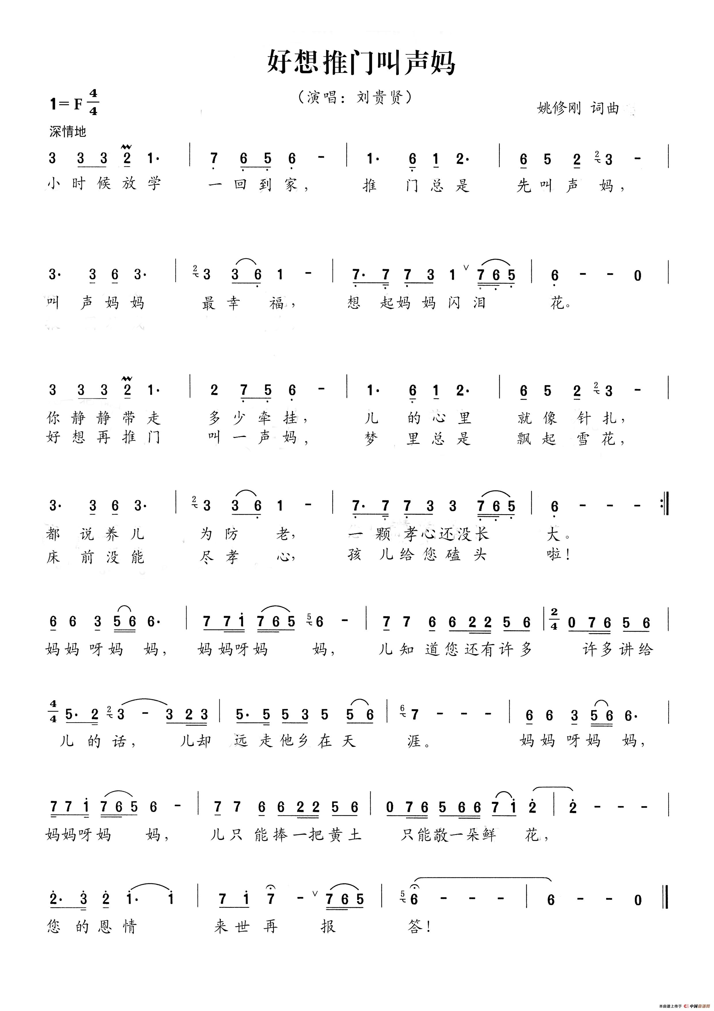 关于《好想推门叫声妈》曲谱的评论