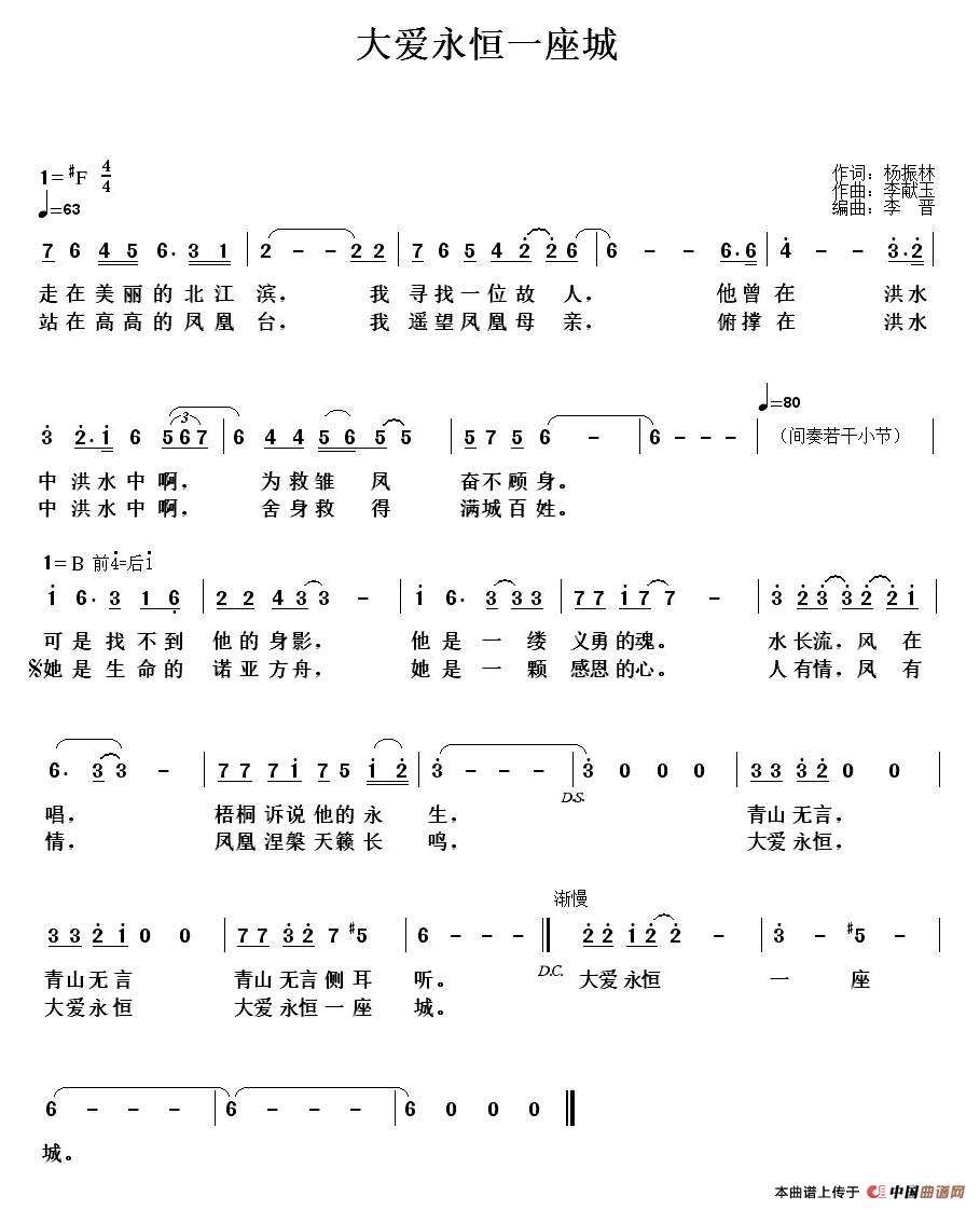 关于《大爱永恒一座城》曲谱的评论