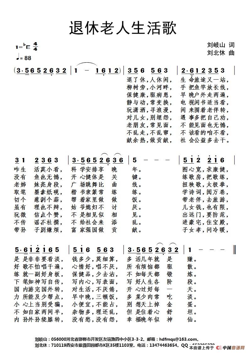 关于《退休老人生活歌》曲谱的评论