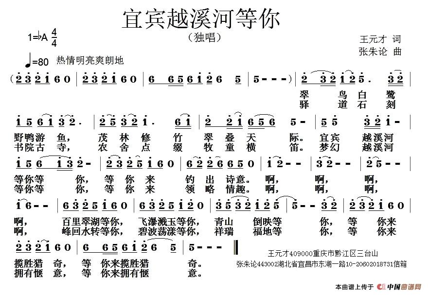 关于《宜宾越溪河等你》曲谱的评论