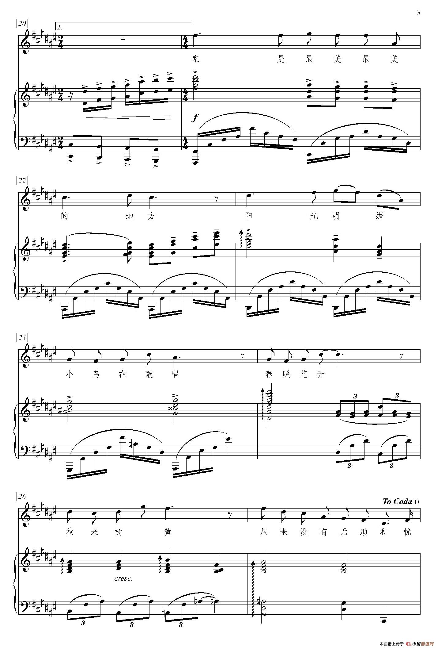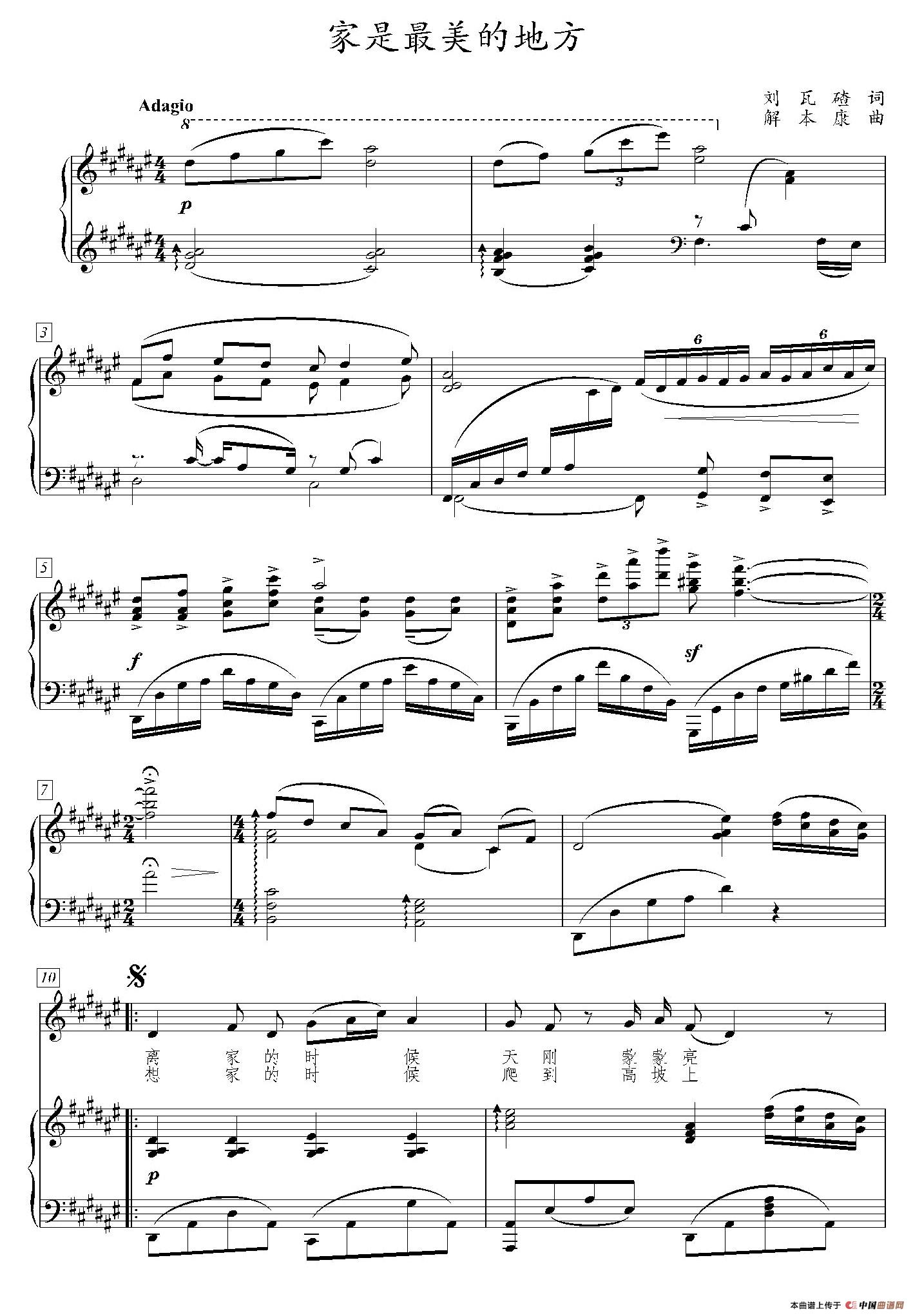 关于《家是最美的地方》曲谱的评论