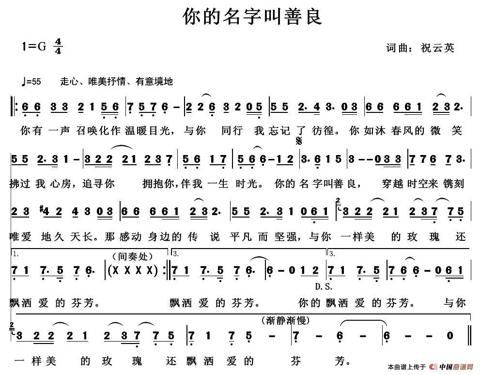致谢:《中国曲谱网》衷心感谢作者老师馈赠原版歌谱!