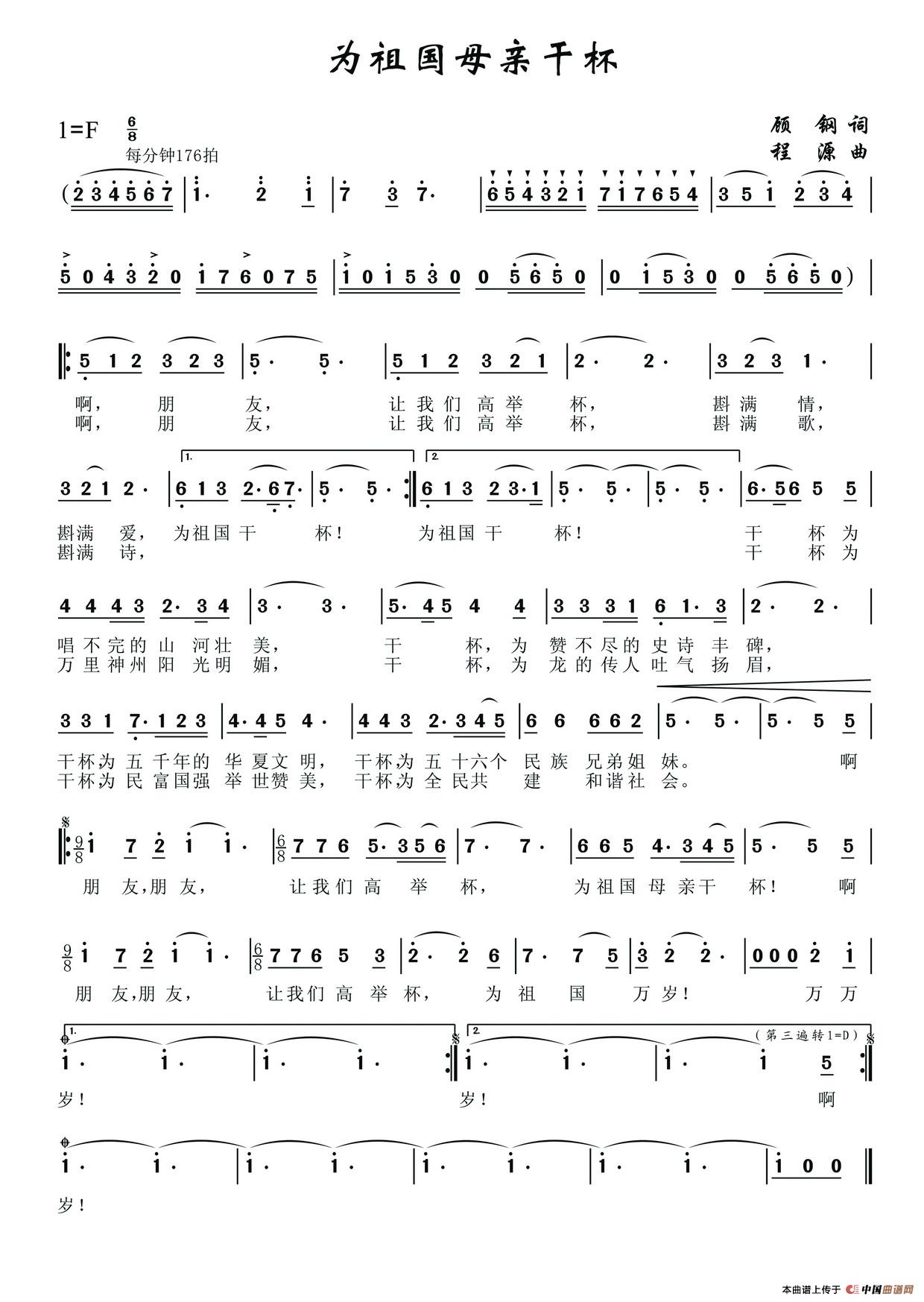 第二段结尾为祖国干杯不是低音5,应为中音5. [回复]