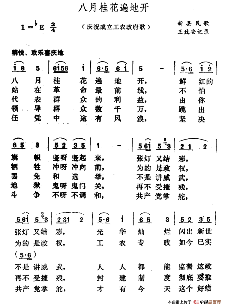 八月桂花遍地开(河南新县民歌、王致安记录)