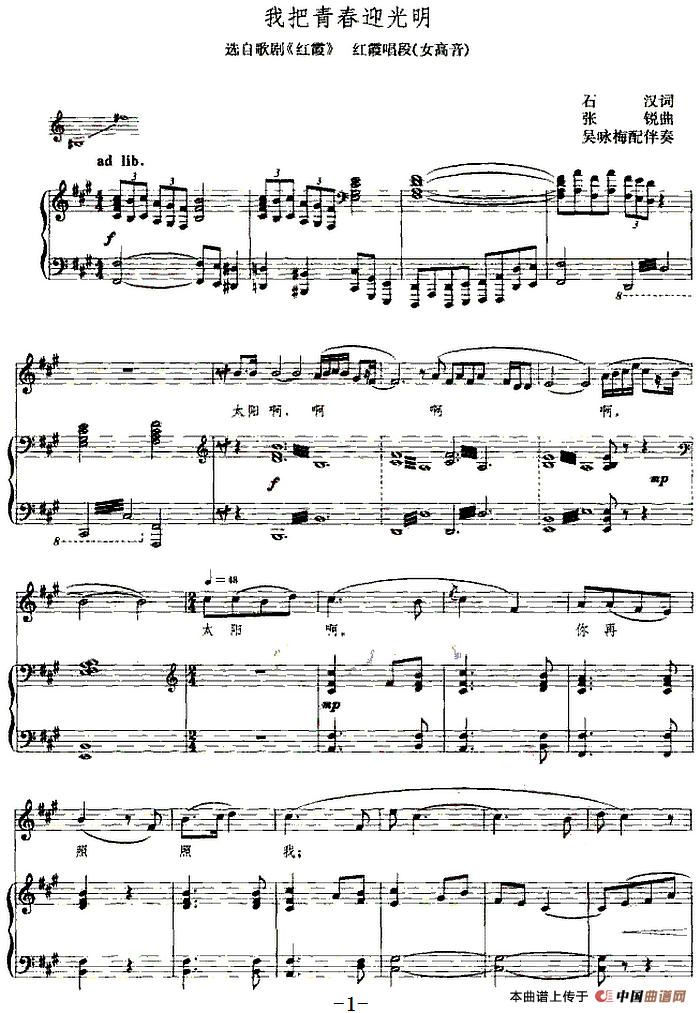 我把青春迎光明(选自歌剧《红霞》红霞唱段)(正谱)