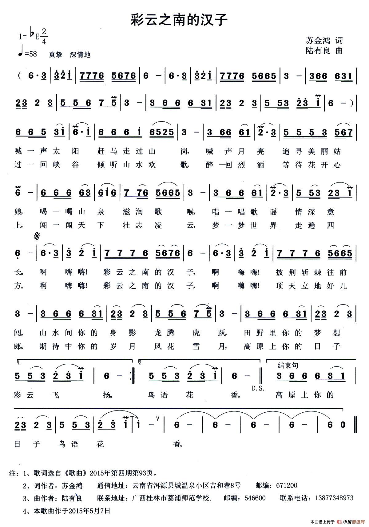 关于《彩云之南的汉子》曲谱的评论