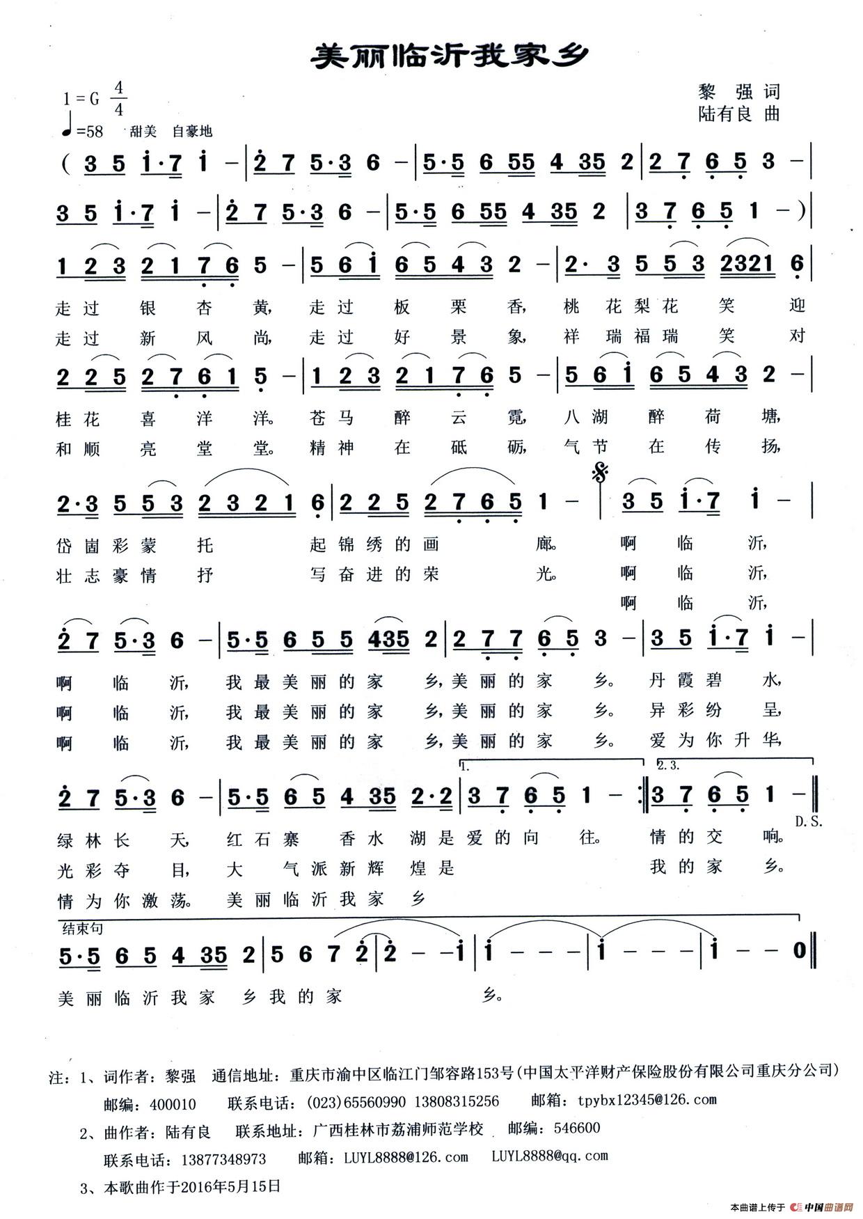 关于《美丽临沂我家乡》曲谱的评论