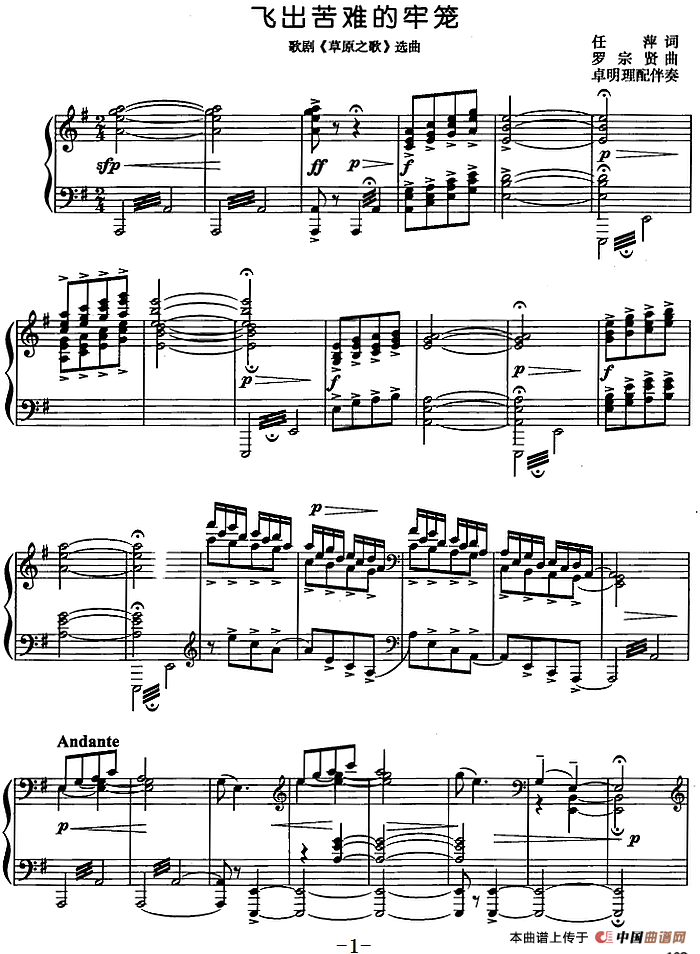 飞出苦难的牢笼(歌剧《草原之歌》选曲、正谱)