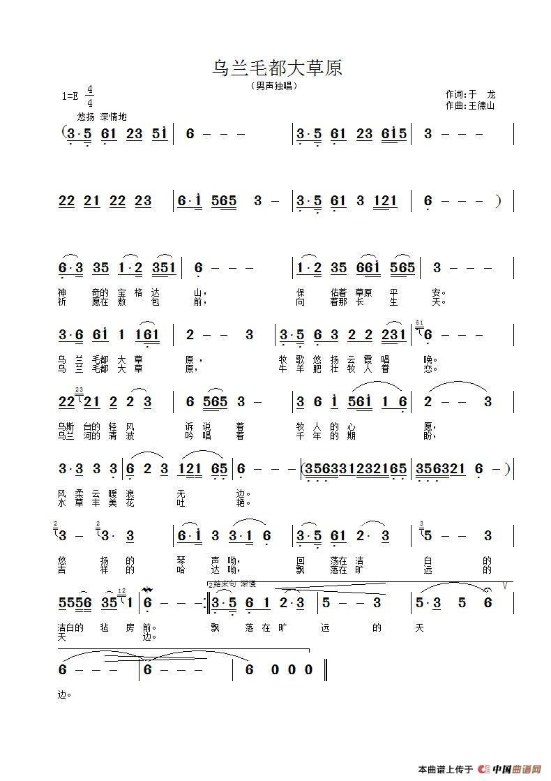 关于《乌兰毛都大草原》曲谱的评论