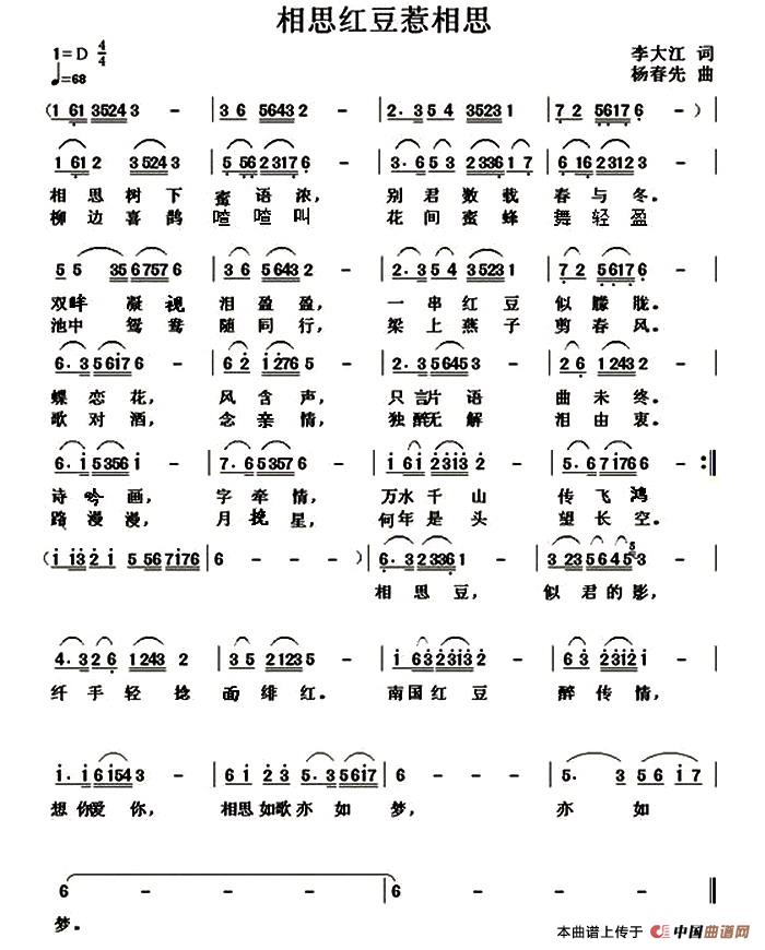 关于《相思红豆惹相思》曲谱的评论