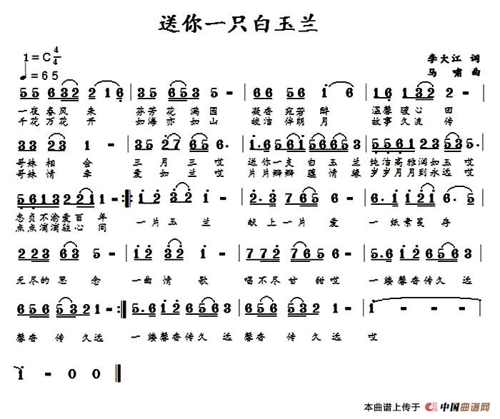 关于《送你一支白玉兰》曲谱的评论