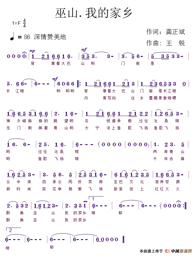关于《巫山·我的家乡 》曲谱的评论
