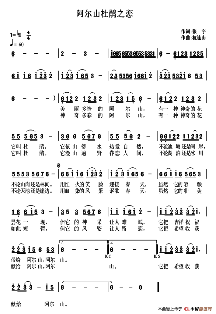 作词; 张 宇 作曲; 杭连山 演唱; 杭连山