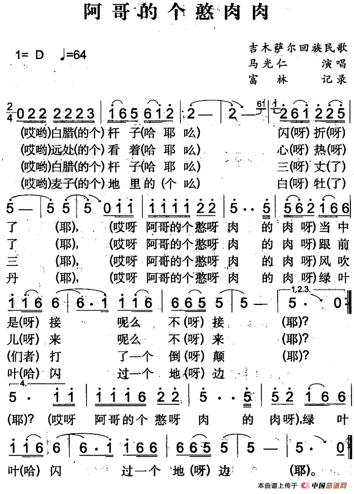 阿哥的个憨肉肉(吉木萨尔回族民歌)